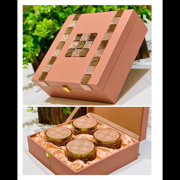 DRY FRUIT BOX Delight your loved ones with our exquisite dry fruit box, the perfect gift for any occasion This luxurious set features four elegant glass jars with beautifully printed tin caps, our dry fruit box is sure to impress and bring joy to every recipient. Make your gift memorable and delightful with this sophisticated and health-conscious offering We offer an exceptional range of quality decorative boxes and gift packaging items. we are whole seller of dry fruit boxes in Delhi.