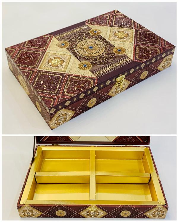 DRY FRUIT BOX Introducing our luxurious dry fruit box, designed to be the quintessential gift for any occasion. Adorned with a charming printed cover and a sleek flower bottom, this box features six equal-sized compartments, each thoughtfully crafted to hold a delightful assortment of premium dry fruits .we are whole seller dry fruit boxes manufacturer in Delhi.