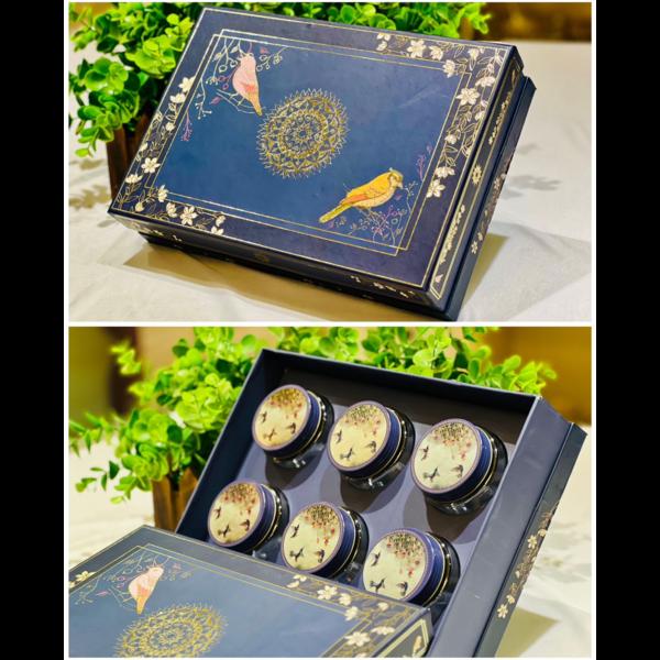 DRY FRUIT BOX Introducing the "Dry Fruit Box, " a beautifully crafted product designed specifically for storing dry fruits. With ample space and exquisite craftsmanship. This exquisite set features six pet jars adorned with intricately printed tin caps, making it a tasteful choice for gifting. We have wide variety of dry fruit gift boxes manufacturer in Delhi.