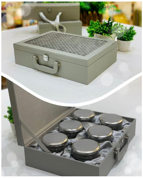 DRY FRUIT BOX we are dry fruit boxes manufacturer in Delhi. Delight your loved ones with our exquisite dry fruit box, the perfect gift for any occasion This luxurious set features four elegant glass jars with beautifully tin caps, our dry fruit box is sure to impress and bring joy to every recipient. Make your gift memorable and delightful with this sophisticated and health-conscious offering We offer an exceptional range of quality decorative boxes and gift packaging items
